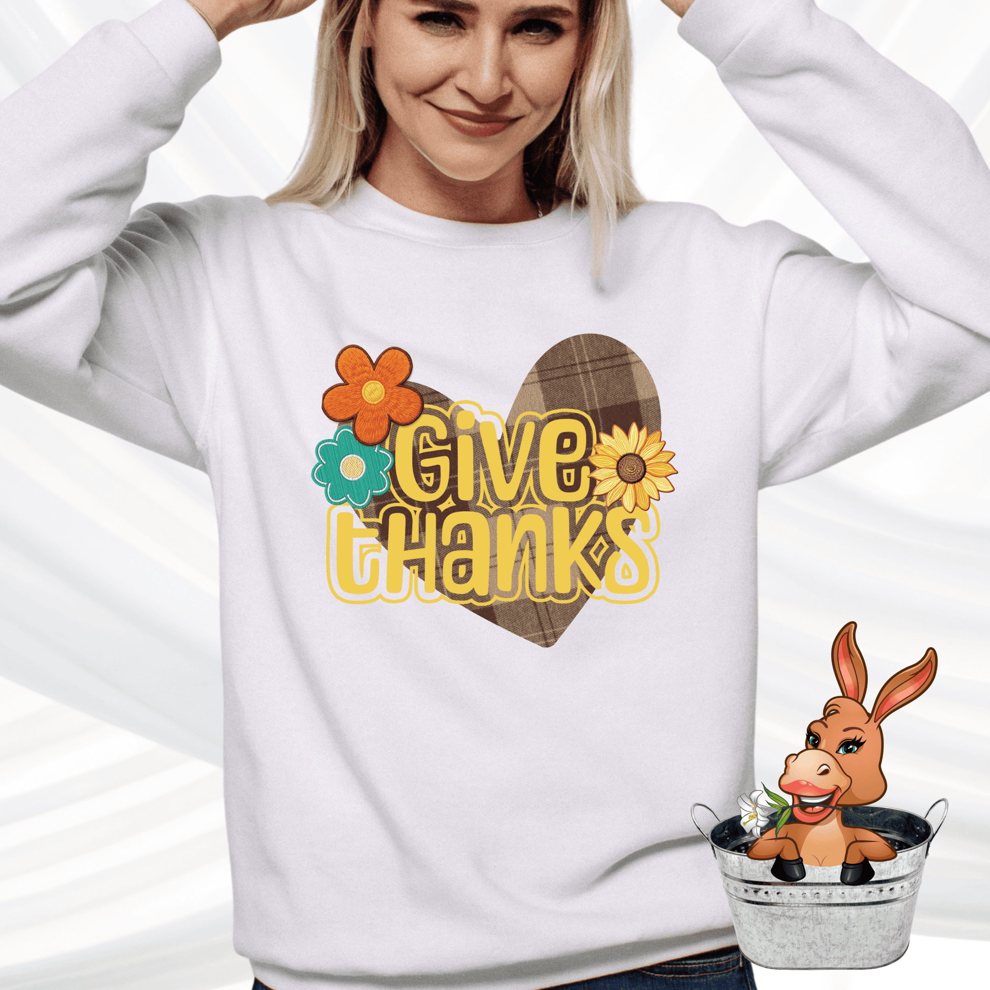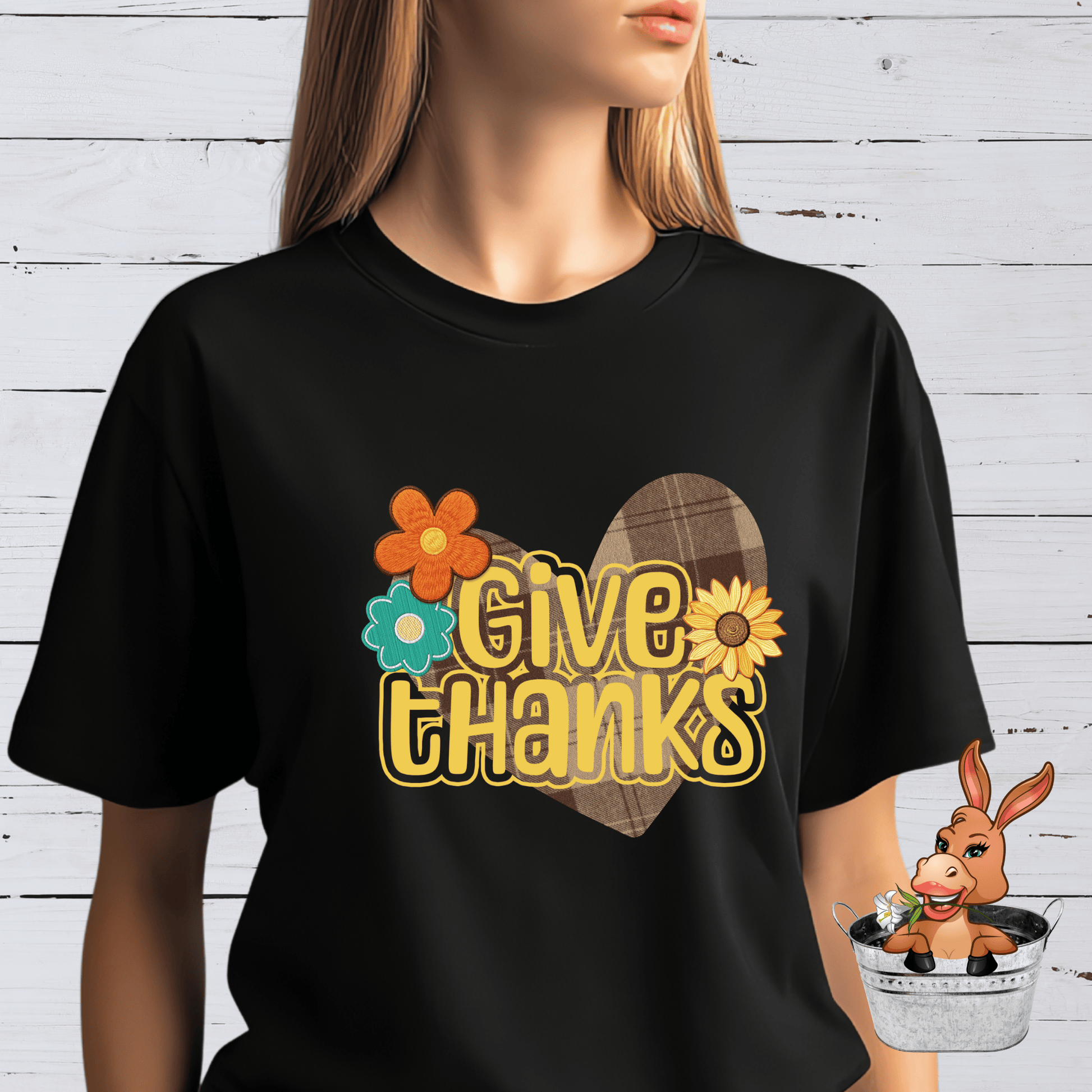 Showcase your Thanksgiving vibe with this super cute Give Thanks Tshirt / Hoodie / Sweatshirt! Our t-shirts and hoodies are all pressed in-house on Gildan Softstyle apparel offering superior comfort at a great price!
